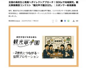 - 記事タイトル: 「Coopusがスポンサー募集をリード ー 観光甲子園2025、Z世代と地域課題解決の新たな挑戦開始」